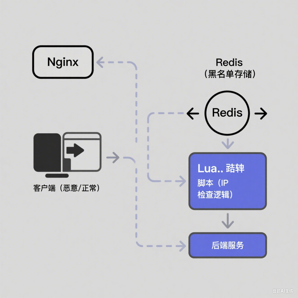 - Nginx:作为高性能的 Web 服务器和反向代理服务器,能够高效处理大量并发请求。它负责接收客户端请求,并在处理请求前通过嵌入的 Lua 脚本检查客户端 IP 是否在黑名单中。