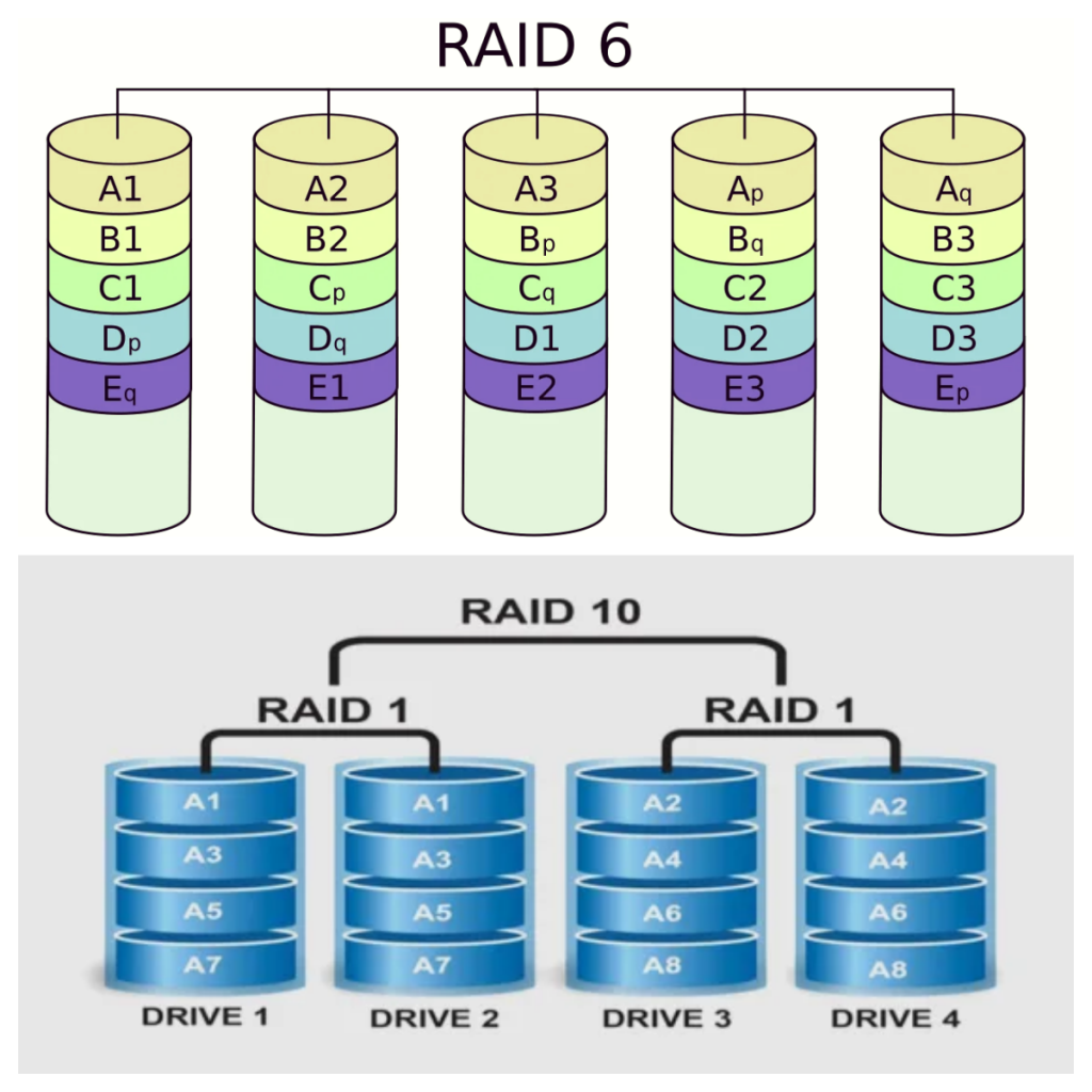 RAID 家族可是人丁兴旺,像 RAID 0、RAID 1、RAID 5、RAID 6、RAID 10 这些成员,个个都有独门绝技,但也都有自己的小软肋。而今天,咱们就把聚光灯打在 RAID 6 和 RAID 10 身上,一探究竟,看看它们凭啥能在 RAID 江湖中杀出重围,成为磁盘管理界的耀眼 “明星”!