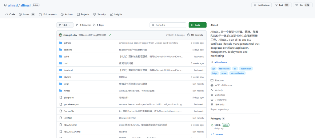 AllinSSL 凭借纯粹的开源理念在 GitHub 收获 2.2k+ ⭐ 星标,代码完全开源且支持私有化部署。从个人开发者到企业级用户,均可自由掌控证书管理系统的每一行代码,无需担心闭源方案的隐性成本。这种社区共建模式让功能迭代始终保持敏捷 —— 全球开发者持续贡献优化方案,使平台在证书自动化管理领域始终保持技术领先,真正实现 “永久免费、自主可控” 的开源价值承诺。